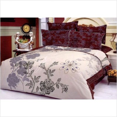 LE25K Floral patterns with shades of black, white and gray that reverse to reddish-brown backdrop and matching prints create a unique twist of a multi-dimensional setting for the sophisticated bedroom. Features: -Set includes: 1 fitted bed sheet, 1 duvet cover, 2 pillow cases or 2 pillow shams (flange). -Material: 100pct cotton. -305 Thread count. -Snaps at the foot of the duvet make it easy to insert a comforter. -High quality cotton fabric and superior workmanship with fine yarns of satin weaving for wrinkle control. -Printed with the latest reactive dyeing technology. -Excellent brightness and long lasting colors. -Machine wash - normal / cool - no bleach - tumble dry.
